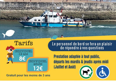 Promenade en mer sur réservation : 3 départs les mardis et jeudis : 14h – 15h – 16h