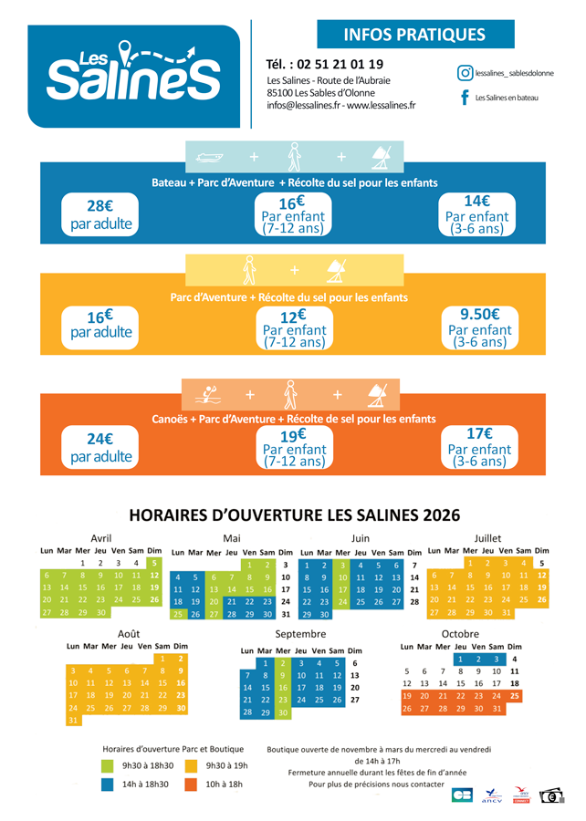 Les Salines c’est la découverte des Marais Salants et du métier de Saunier. En Bateau, en Canoës ou à pied il y en a pour tous les goûts. A travers les sentiers du Parc d’Aventure du sel vous explorerez le Marais, son fonctionnement et son histoire avec, jeux pédagogiques et d’énigmes pour les enfants ! Aux gradins, lors de la rencontre du Saunier, découvrez un métier ancestral et méconnu, où les enfants pourront récolter eux-mêmes leur propre sel, moment magique et mémorable pour les apprentis petits Sauniers !
