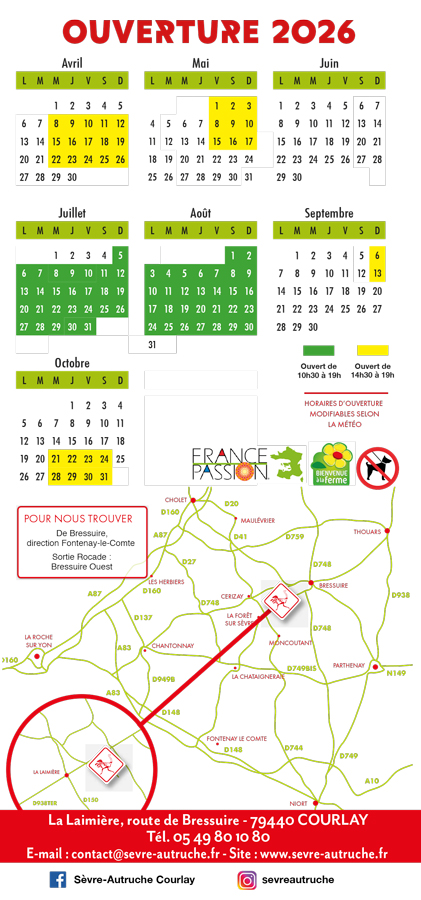 Venez à la rencontre du plus grand oiseau du monde : l’autruche ! Majestueuse, curieuse et impressionnante, elle partagera la vedette avec ses cousins exotiques : les nandous d’Amérique du Sud et les émeus d’Australie. Une occasion unique de découvrir ces animaux fascinants, d’en apprendre plus sur leur mode de vie, leur alimentation et leurs particularités… Petits et grands seront émerveillés !